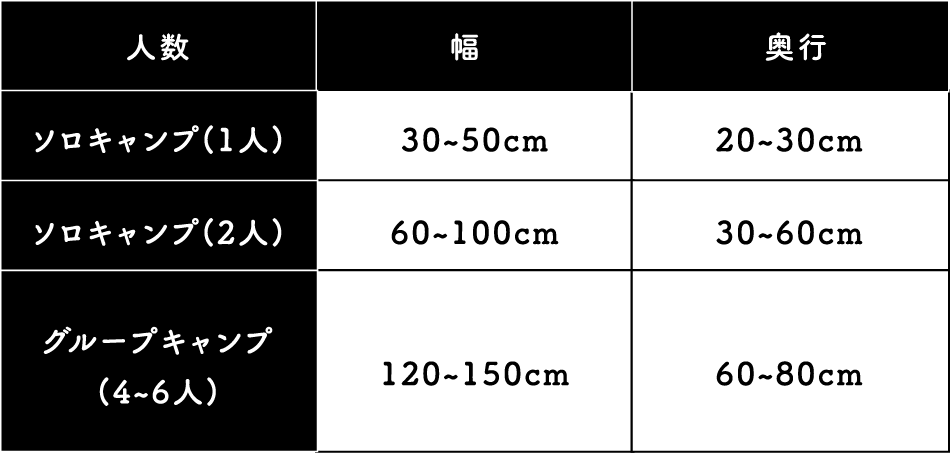 必要なテーブルのサイズは変わります。
