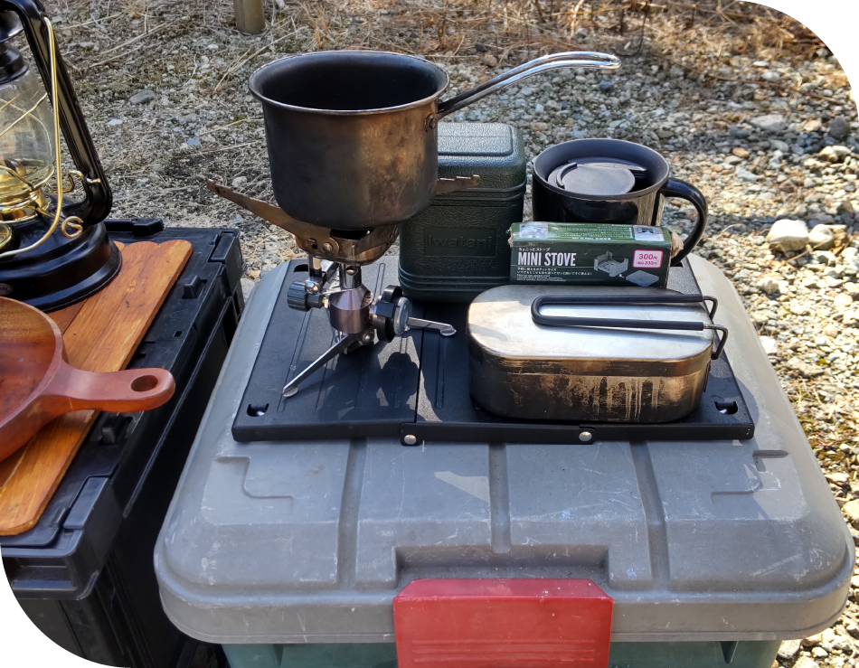 軽量化するなら、収納系のキャンプギアをテーブル代わりに!