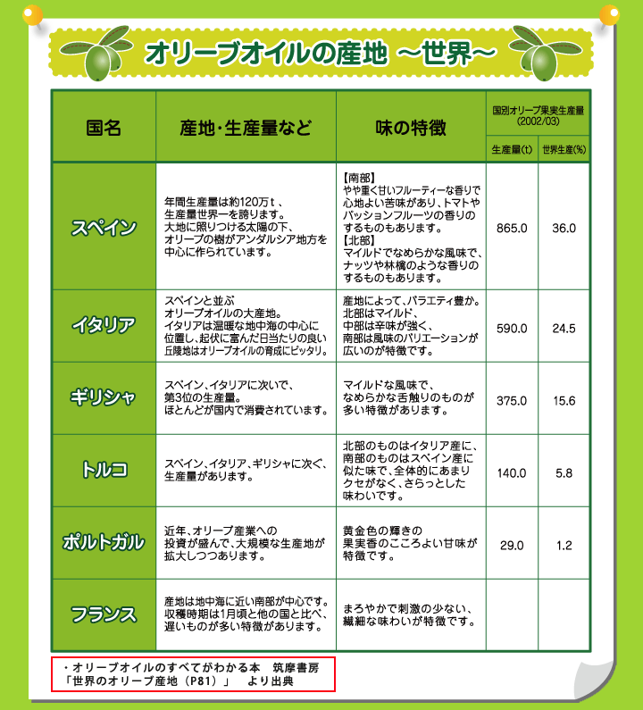オリーブオイルの産地